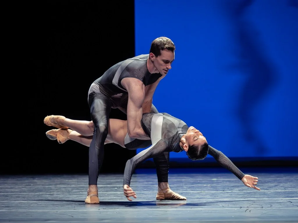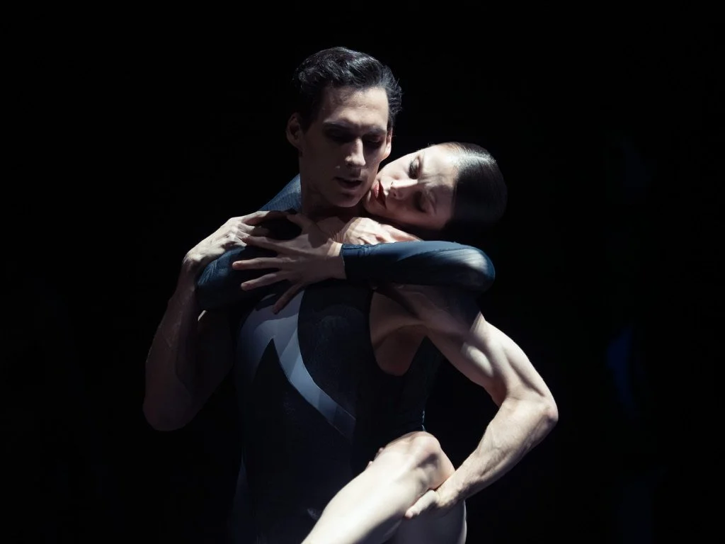The choreography extends classical technique rather than departing from it — lifts that push further than convention permits, pointe work in full flight, the formal architecture of the pas de deux opened from within. Florian Etti's design and Aleksandar Noshpal's costumes give the work a visual candor that matches the music. Tanja Rühl's lighting finds the interior of each section, each movement living in its own quality of light.